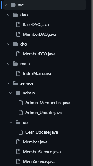 service.user : 사용자만 접근할 수 있는 메뉴 서비스