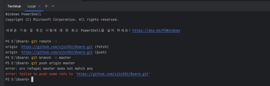 push하기 전에 브랜치 이름을 master에서 main으로 변경시켰당