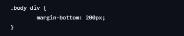 body 안에 있는 모든 div 태그의 아래쪽에 200px 의 공간을 주었다.