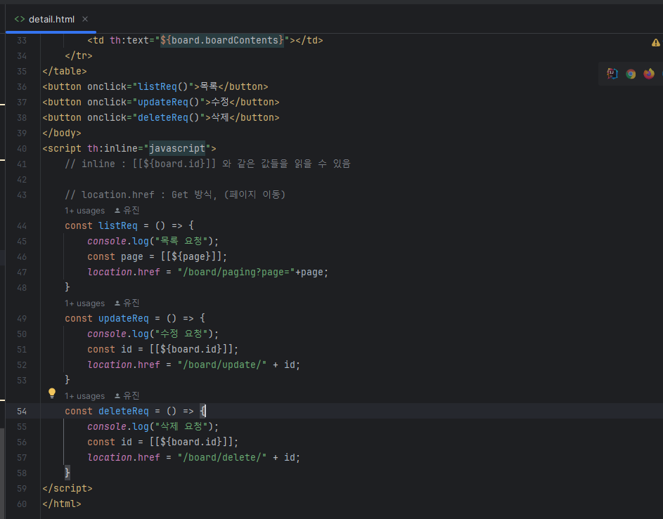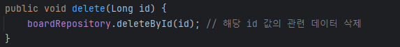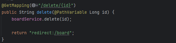1. board/delete/{id} 주소를 Get 방식으로 요청