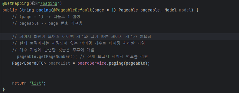 2. http://localhost:8082/board/paging 주소 요청 (Get 방식)