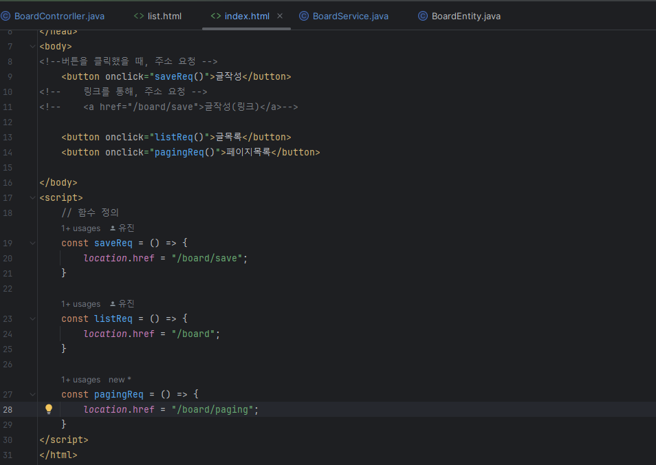 board/paging으로 요청이 들어왔지만 실제로는 /board/paging?page=1 형식으로 응답함