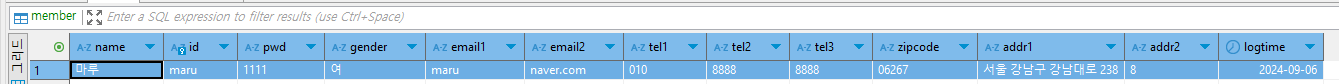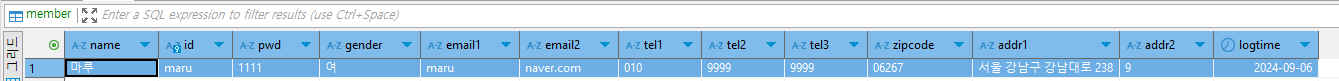 회원정보 수정 버튼 클릭 시, DB 정보가 변경된다.