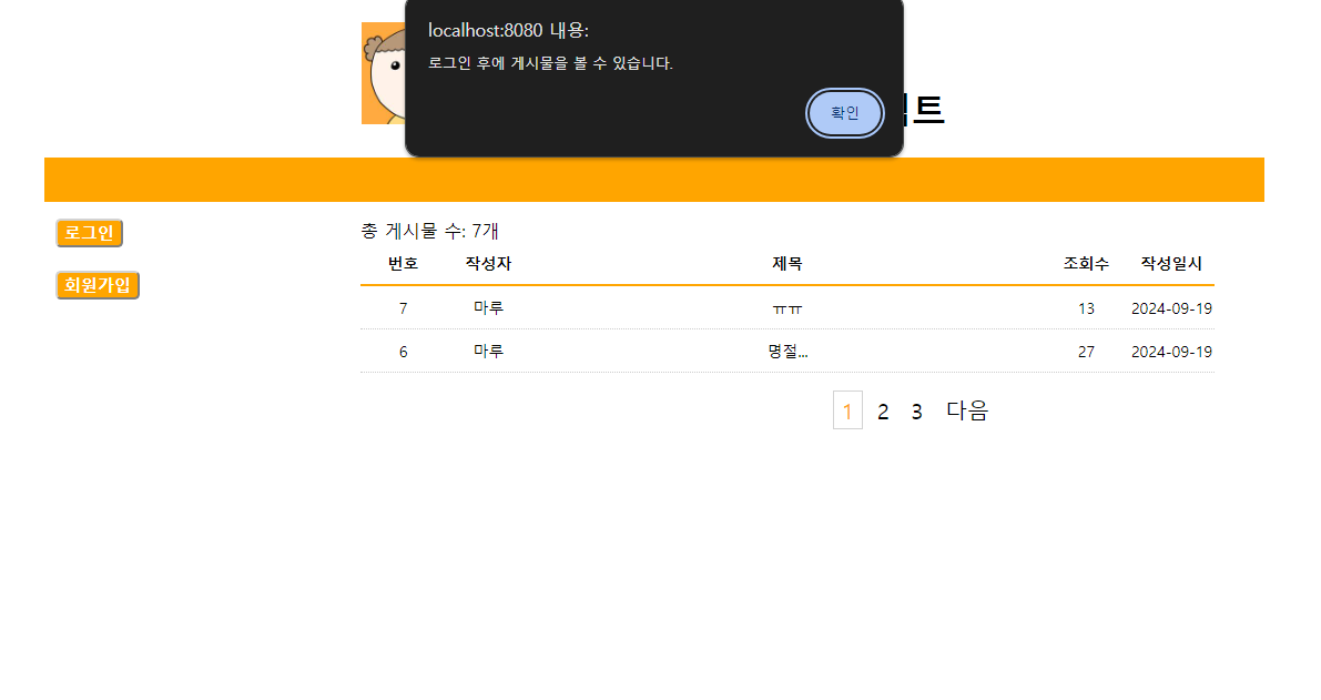 if($('#memId').val() == '') alert('로그인 후에 게시물을 볼 수 있습니다.');