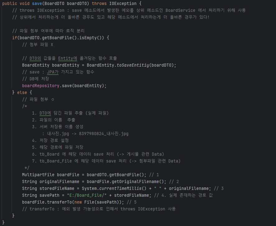 - 파일 저장 : boardFile.transferTo(new File(파일 전체경로));
