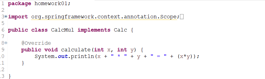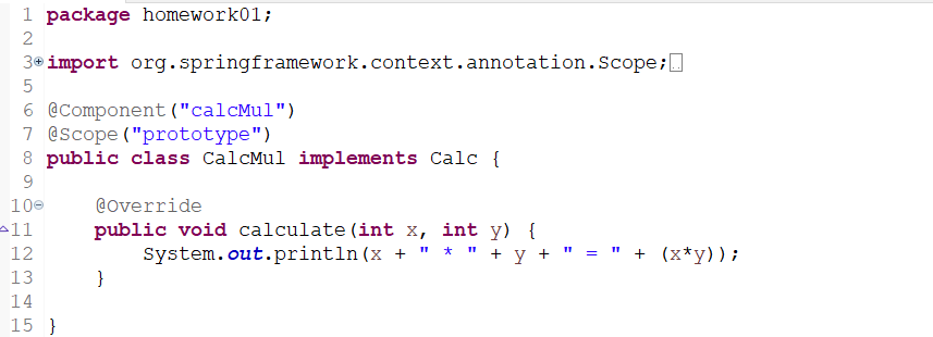 <bean id="calcMul" class="homework01.CalcMul" scope="prototype"></bean>