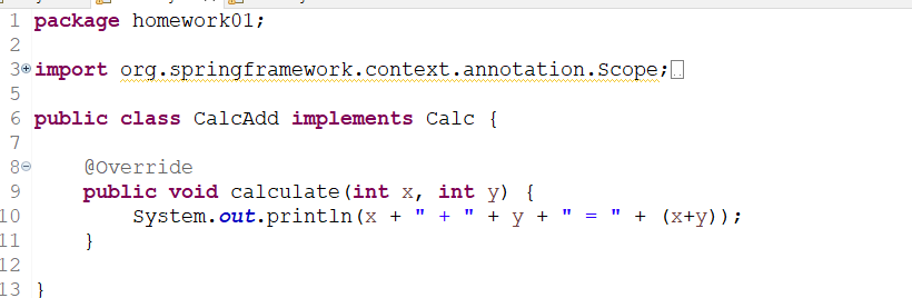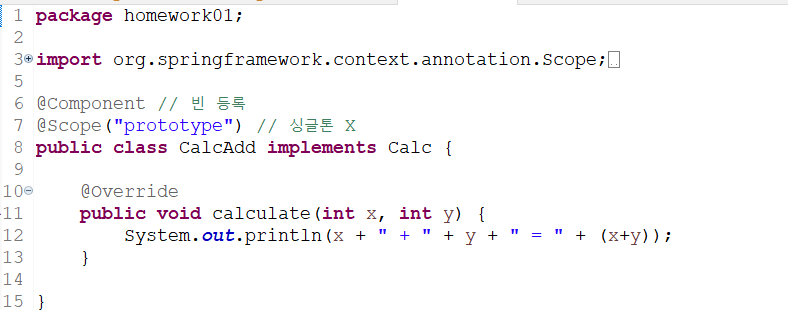 <bean id="calcAdd" class="homework01.CalcAdd" scope="prototype"></bean>