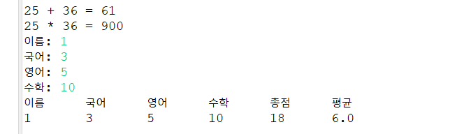 System.out.println("이름\t국어\t영어\t수학\t총점\t평균\t");
