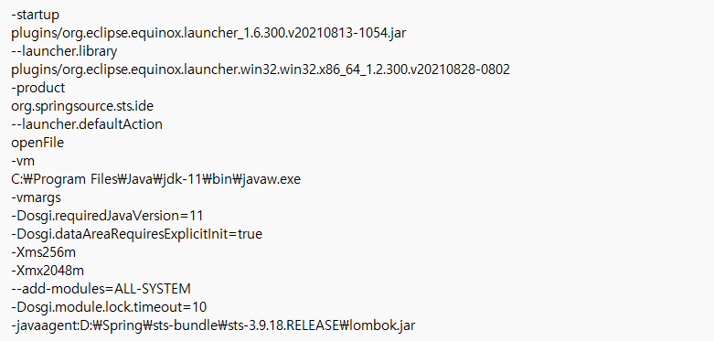 STS.ini 파일에 lombok.jar 등록되어 있는지 확인
