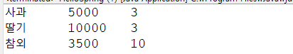 System.out.println(fruit + "\t" + cost + "\t" + qty);