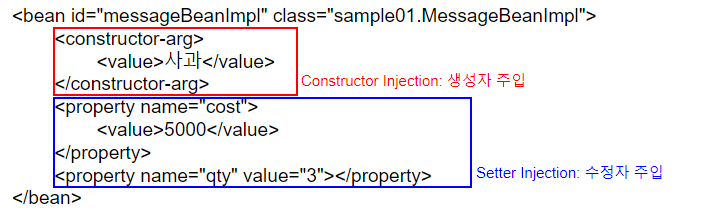 <bean id="messageBeanImpl" class="sample01.MessageBeanImpl">