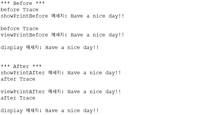 - method : loggingAdvice 클래스에서 공통 코드가 정의되어 있는 함수