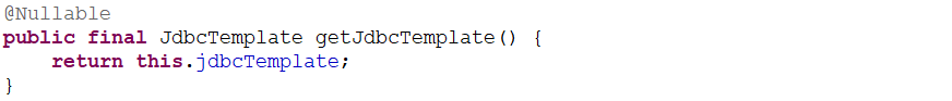 JdbcTemplate 객체를 사용할 때에는 JdbcDaoSupport 클래스의 getJdbcTemplate() 함수를 호출하여 사용한다.
