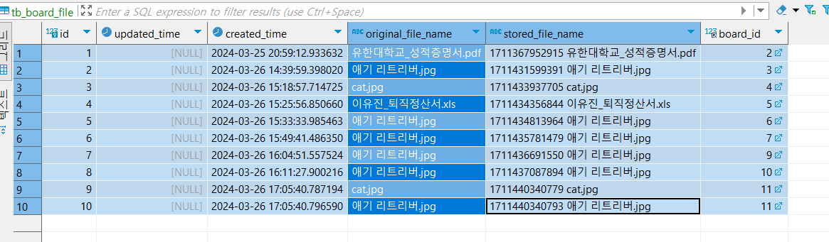 3. tb_board_file 에 파일 관련 정보 저장