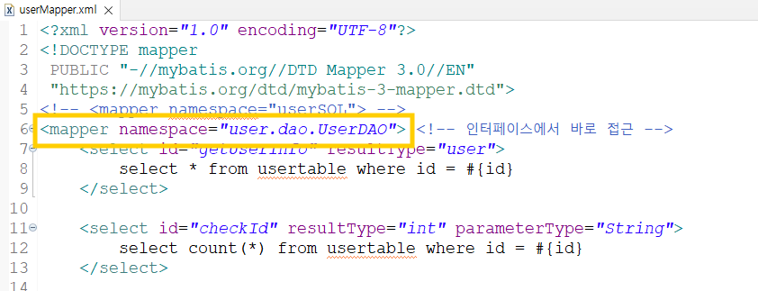 이번에는 구현체를 통해서 xml 파일에 접근하는 것이 아닌, Interface가 바로 xml파일에 접근해보도록 하겠다.