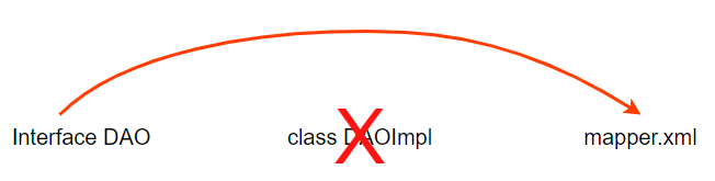 기존에는 아래 그림처럼 인터페이스의 구현체 DAOImpl를 통해서 mapper.xml 파일에 접근하였다.