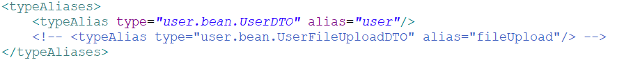 typeAliases 태그 사용하여 자주 사용하는 객체를 개발자가 원하는 이름으로 지정함
