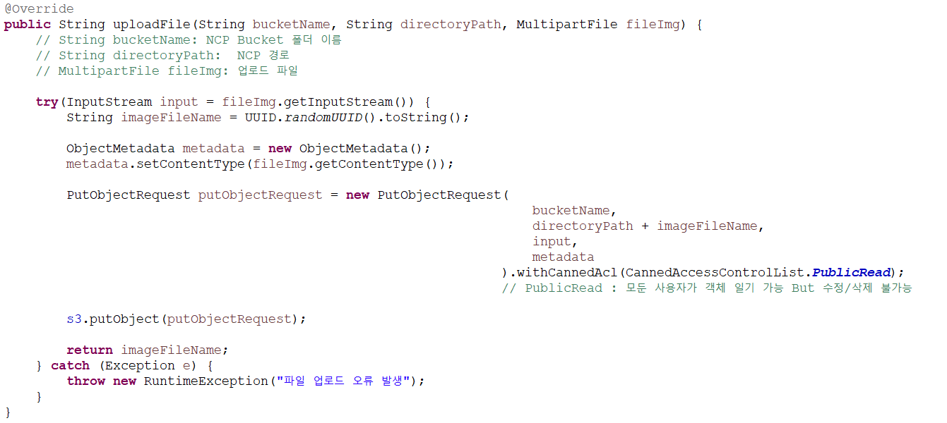 - NCP에 파일 업로드 후, fileName 반환