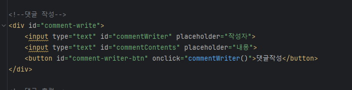 - writer : commentWriter(태그 id)에 대한 값을 가져와 변수에 저장