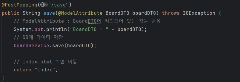2. boardService.save : 전해 받은 boardDTO 값 저장