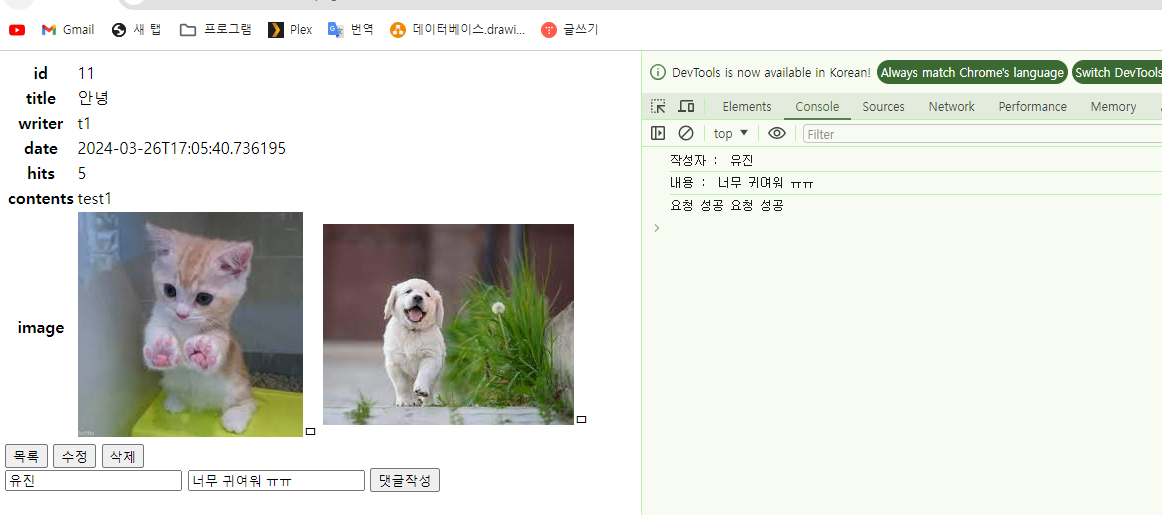 1. /comment/save 주소로 post 요청