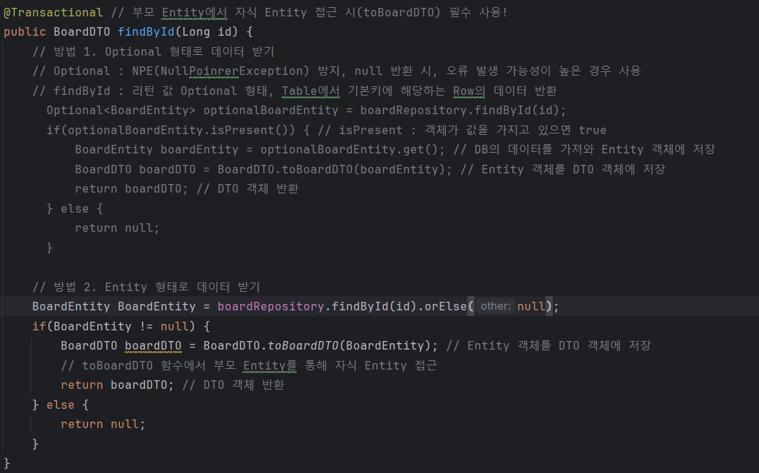 BoardEntity board = boardRepository.findById(savedId).get(); // 6-3. 저장한 id에 대한 Data 가져오기