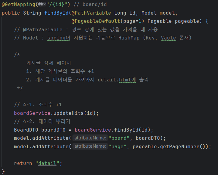 BoardService의 findById 메소드 호출