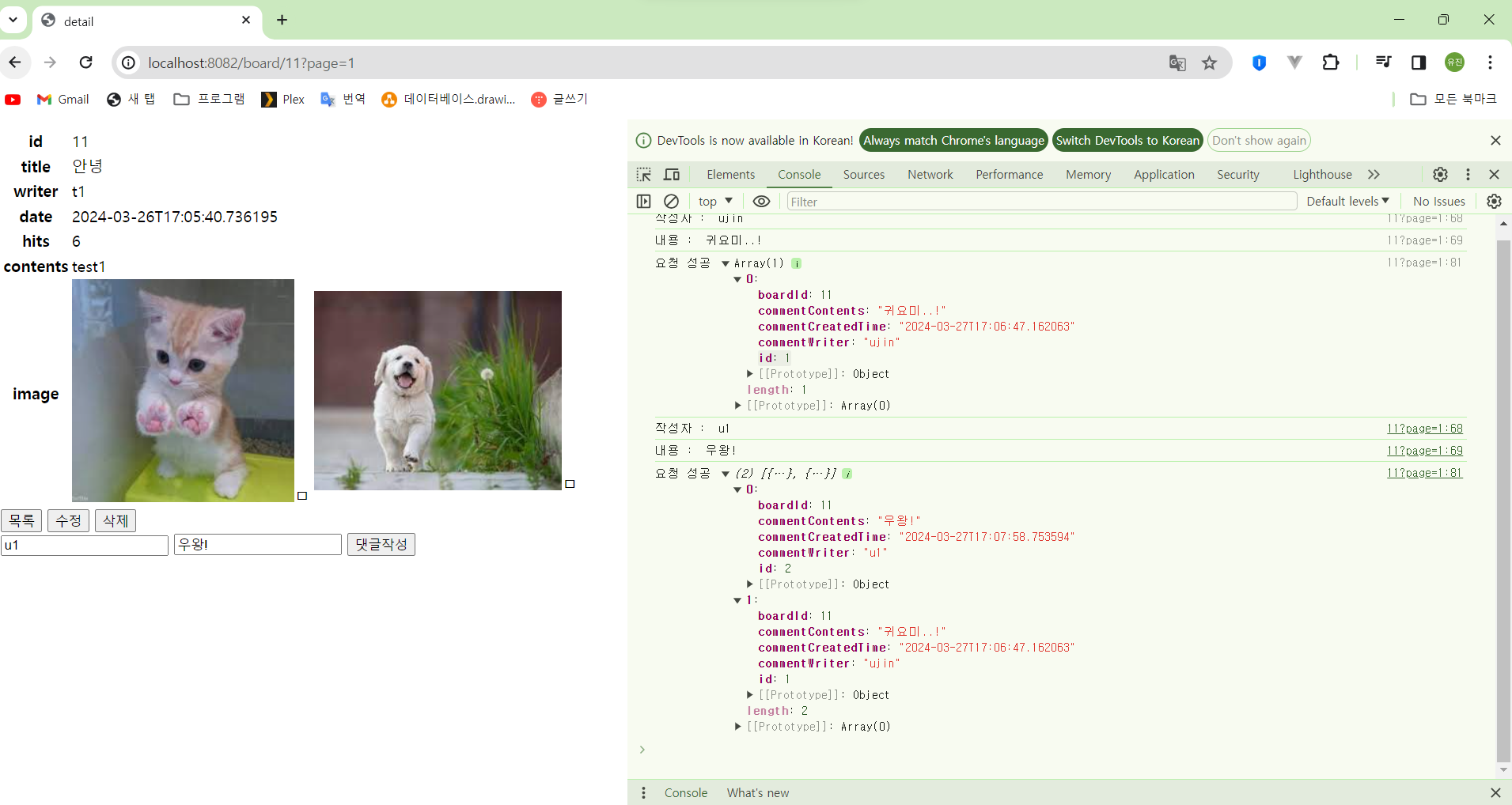 저번 시간에는 Controller가 댓글 요청을 잘 받는지 확인만 하였다.