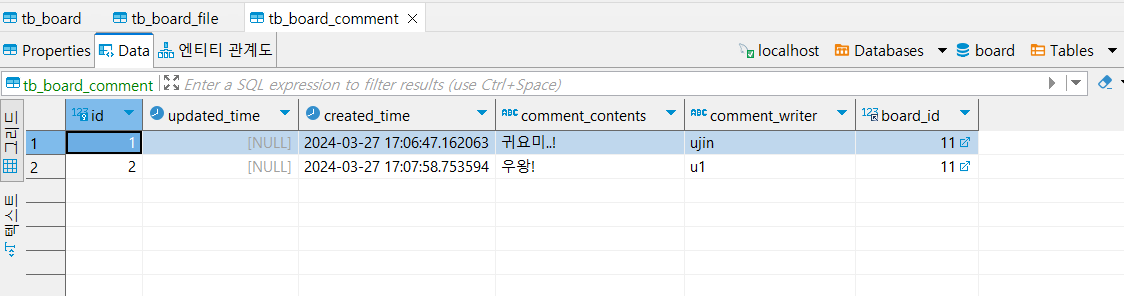 쿼리를 사용하여 tb_board_comment에서 board_id가 boardEntity 의 id와 동일한 값 데이터만 추출하여야 한다.