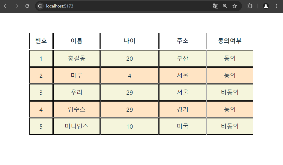 {seq: 1, name: '홍길동', age: '20', addr: '부산', done: true},