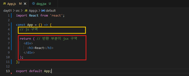 리엑트는 순수 자바스크립트가 아니다 => 베이스가 자바스크립트일 뿐이다