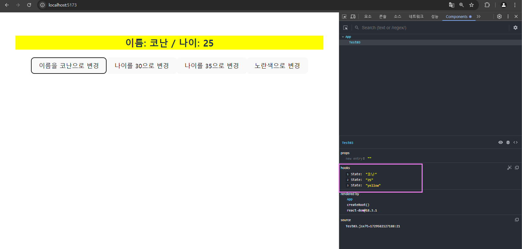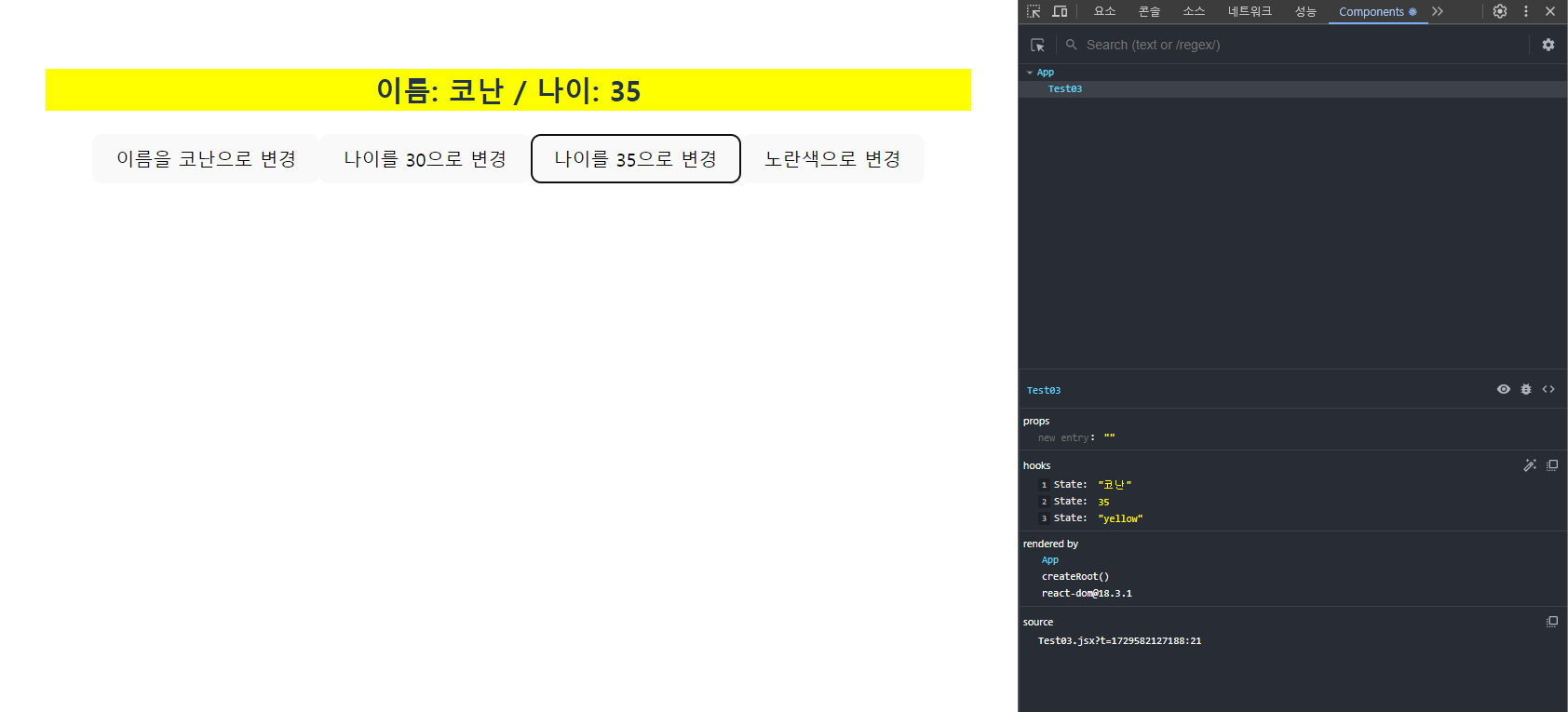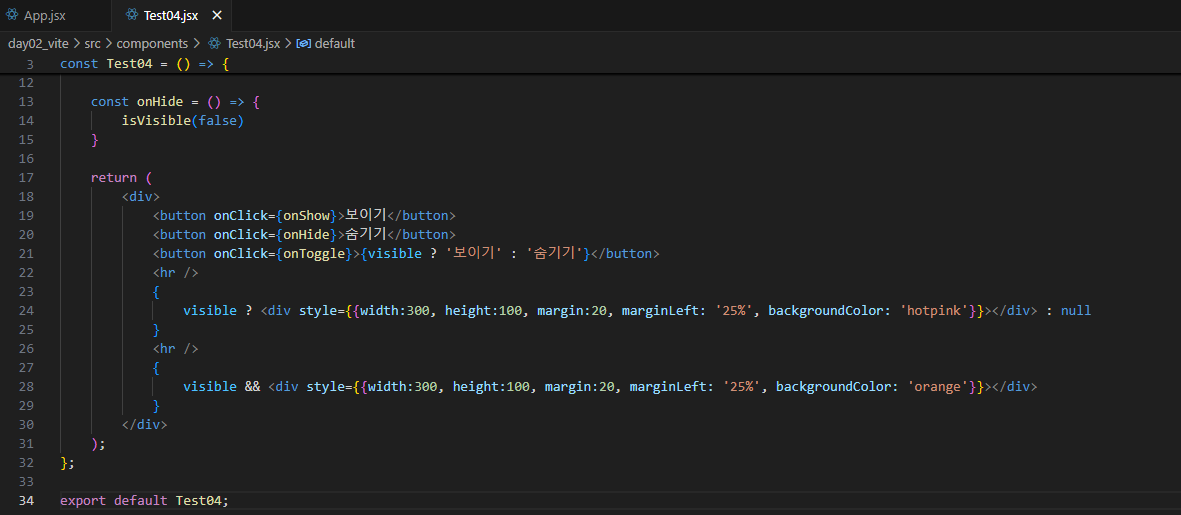 <li>나이: {age} 살 {age >= 19 ? '성인' : '청소년'}</li>