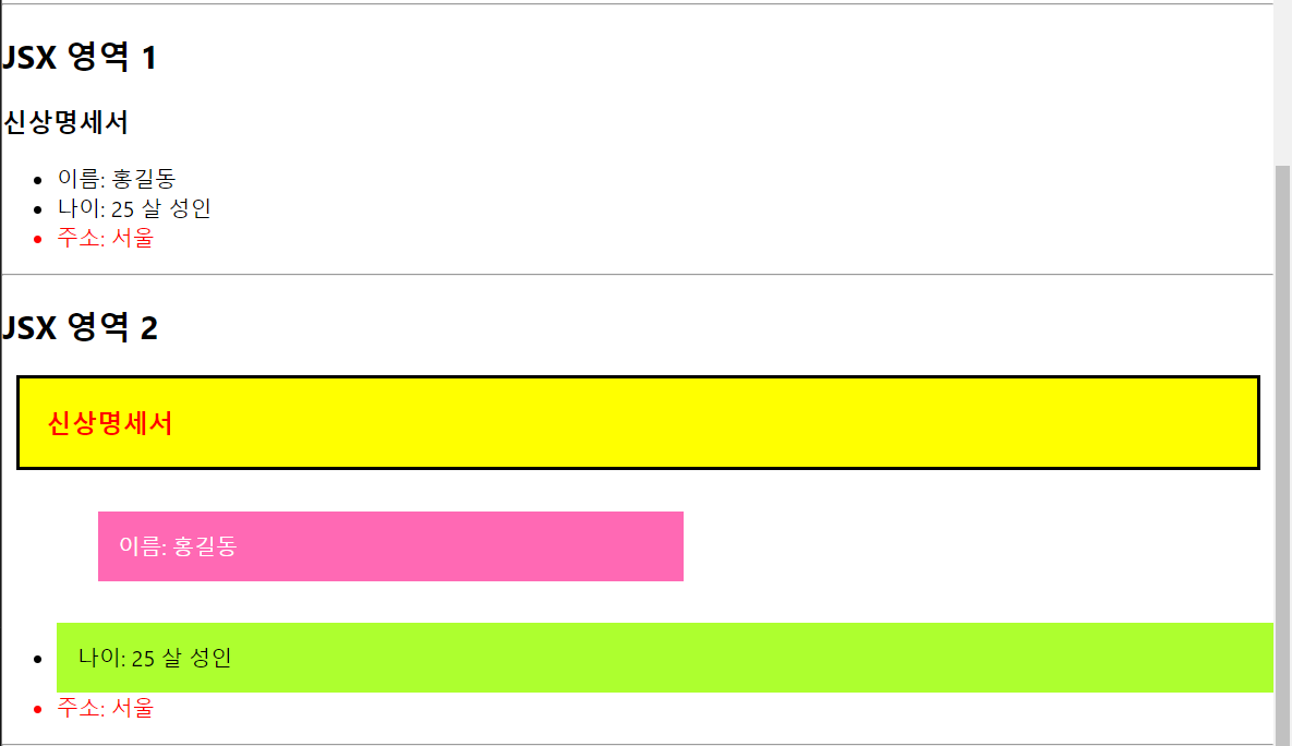 <h2>JSX 영역 1</h2>