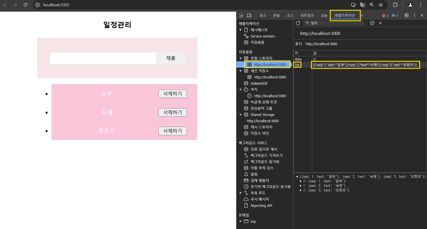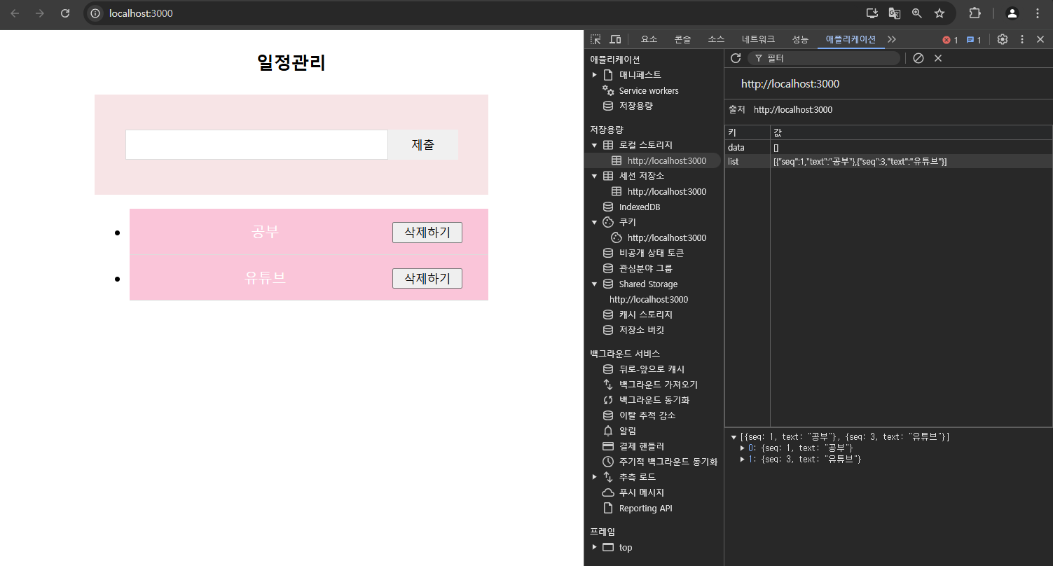 - 웹 스토리지는 Key와 Value 형태로 이루어졌다.