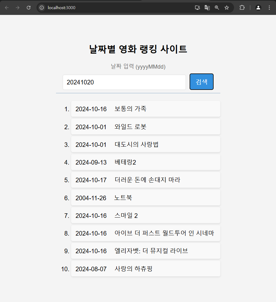 날짜 입력 시, 해당 일자 영화 랭킹 출력