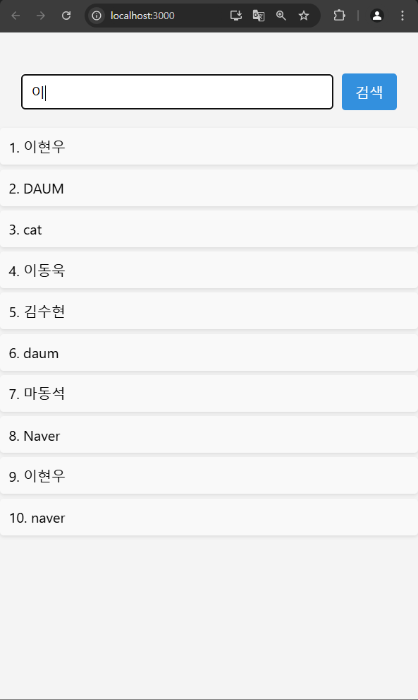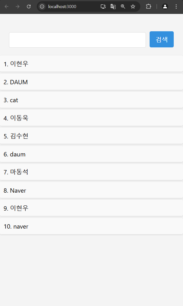 검색 버튼 클릭 시, 해당하는 list 출력