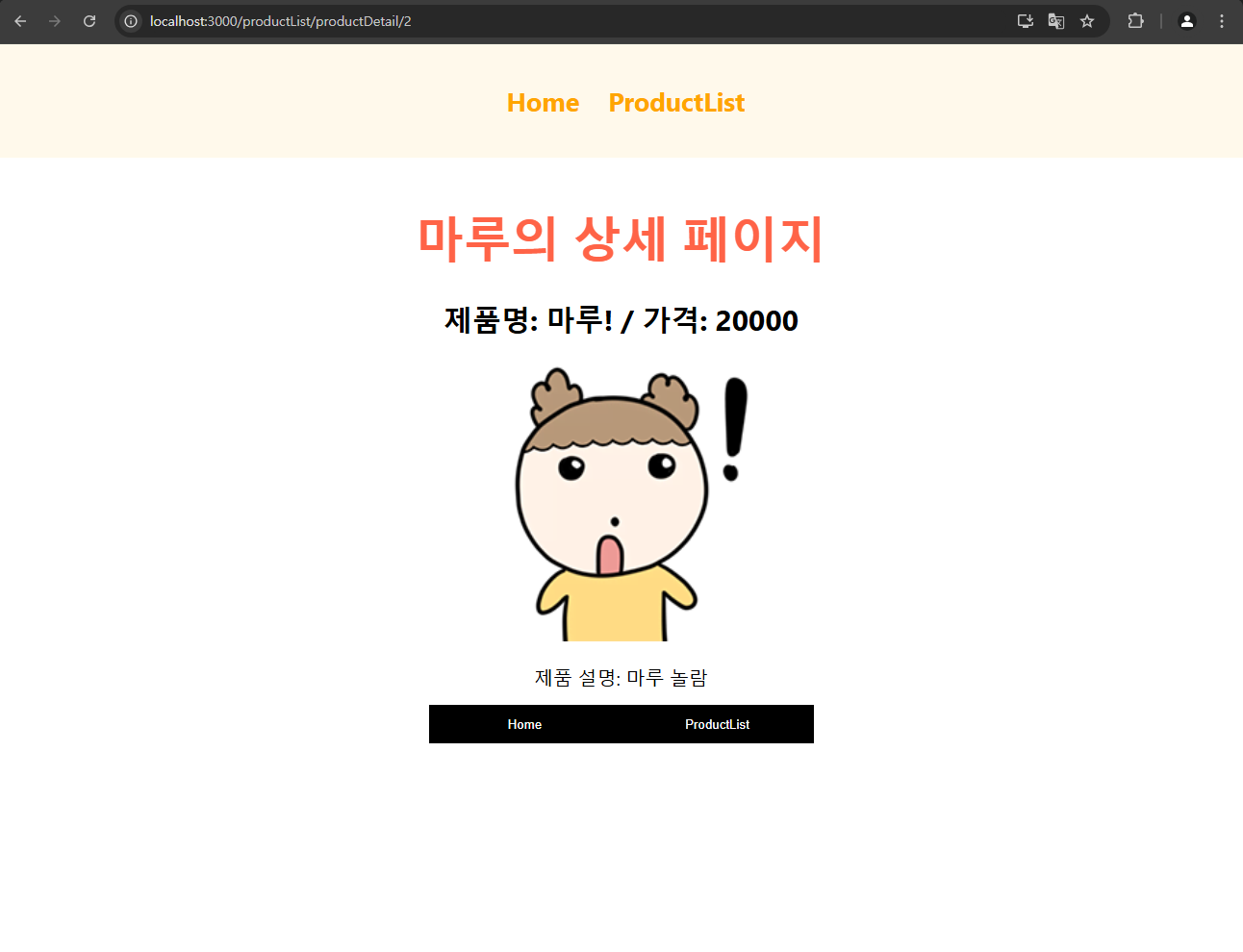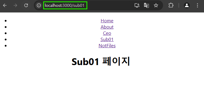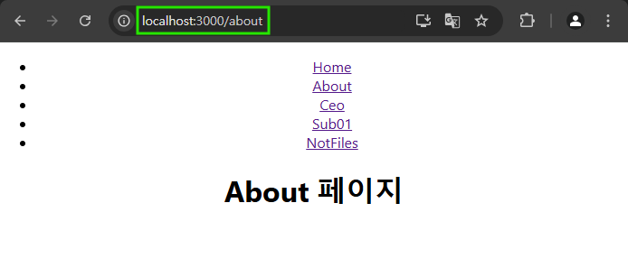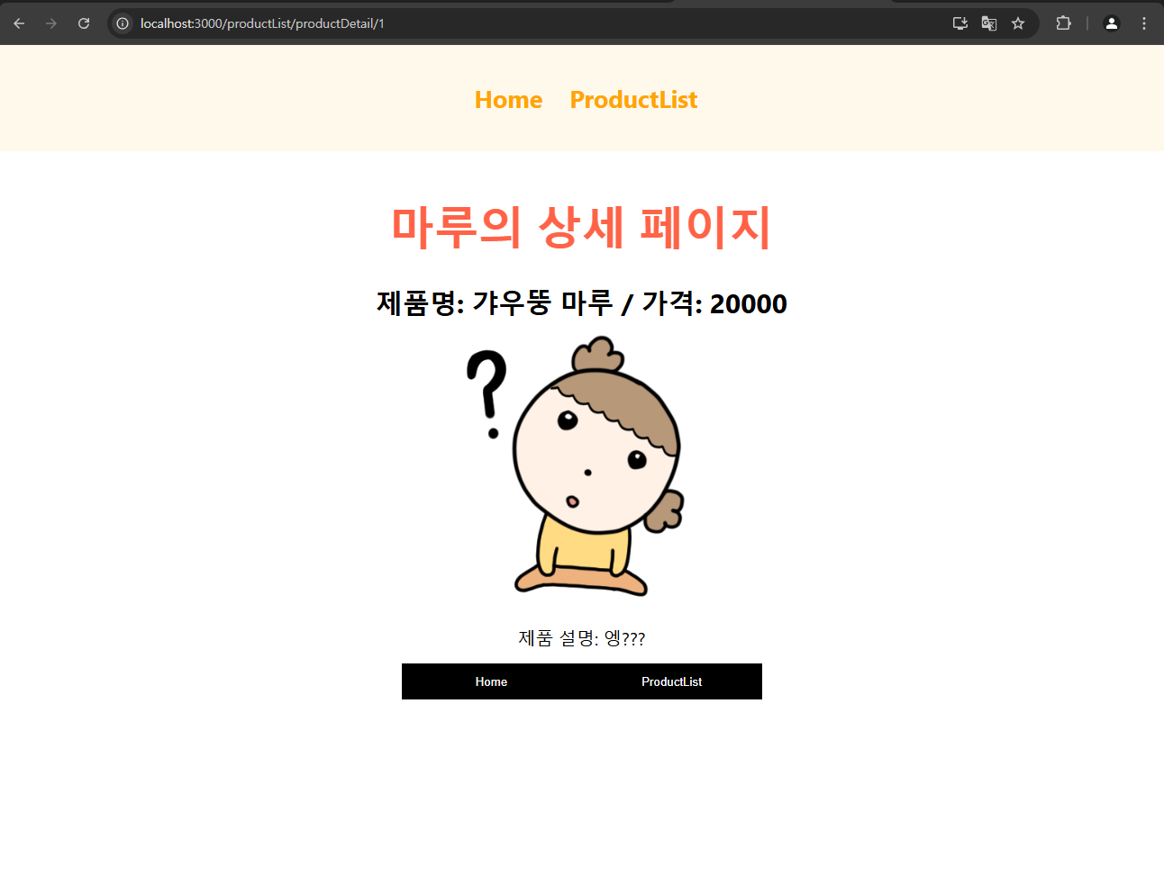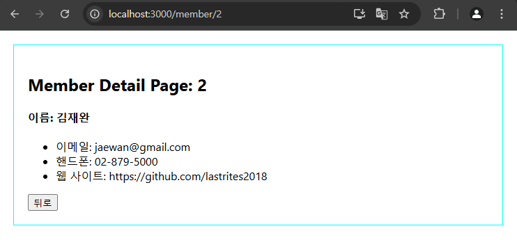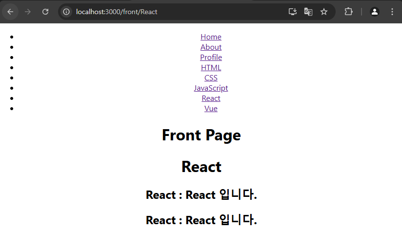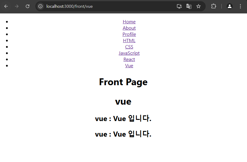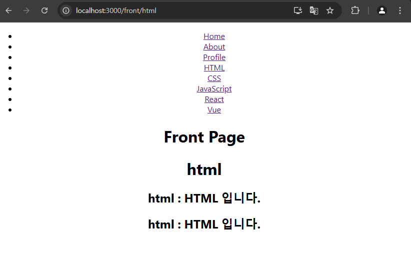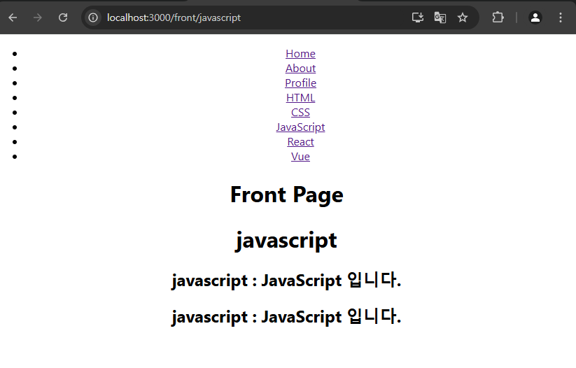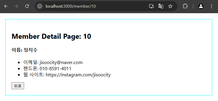 초록색: 아래 결과 화면의 url 경로 의미 >> 메뉴(노란색)에 의한 노출되는 화면