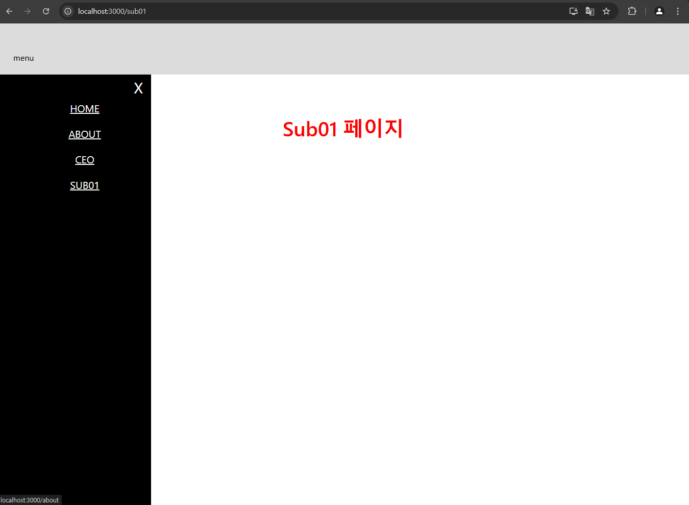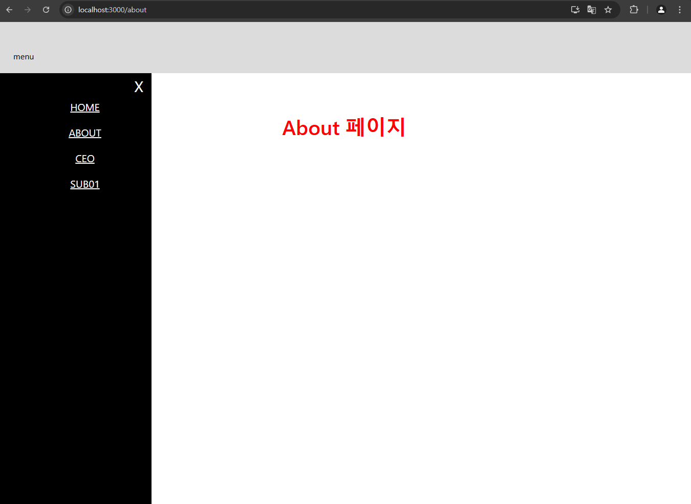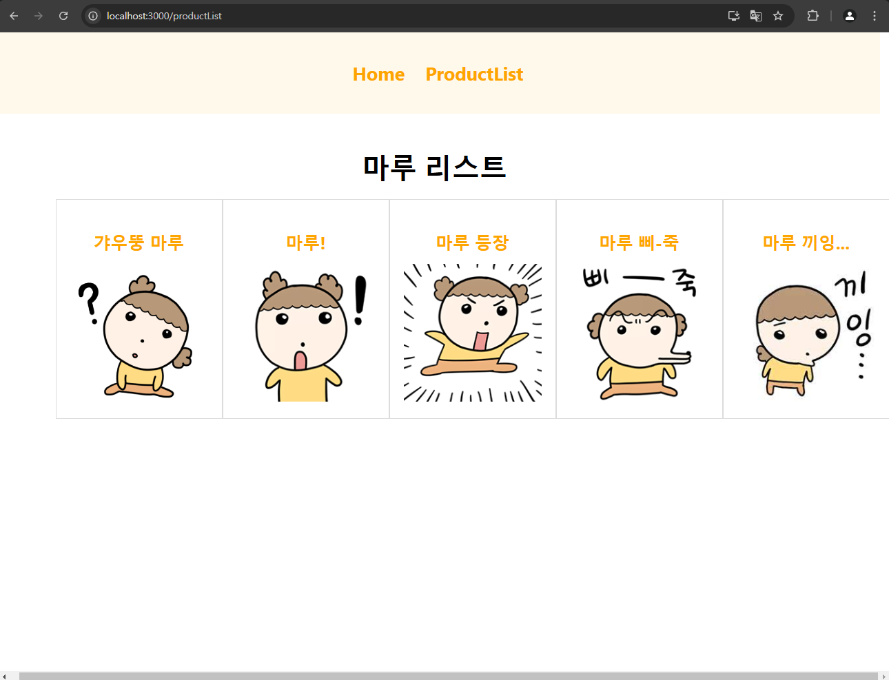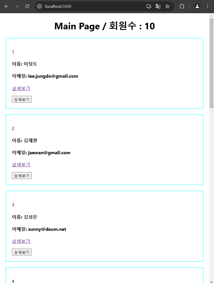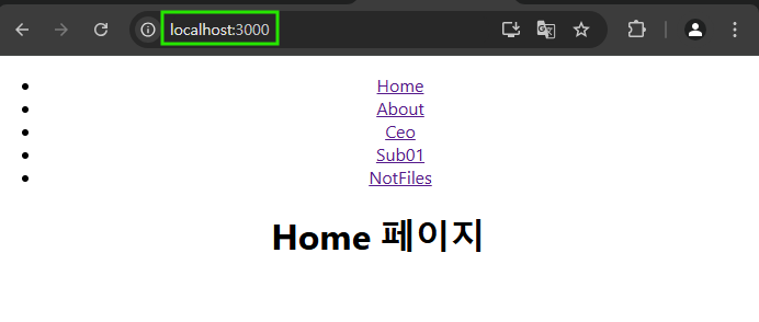 초록색: 아래 결과 화면의 url 경로 의미 >> 메뉴(노란색)에 의한 노출되는 화면