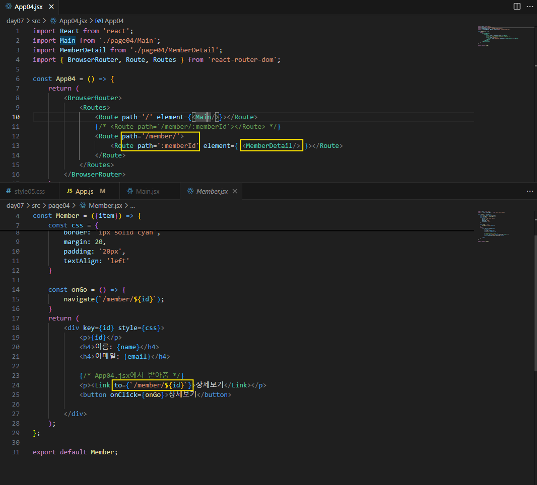 :{변수명} 를 route path에 사용하면 useParams() 로 불러와 사용 가능