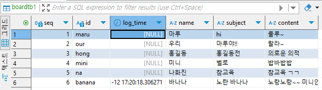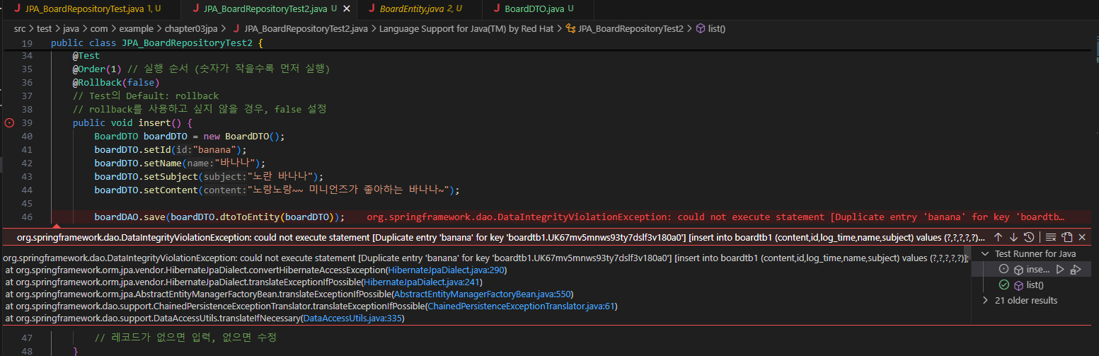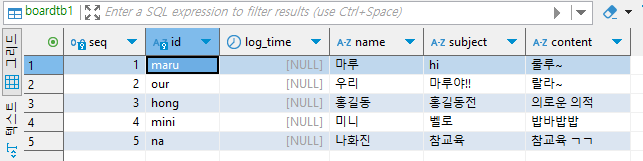 id 컬럼이 유니크이기 때문에 동일한 이름일 경우 오류가 발생된다.