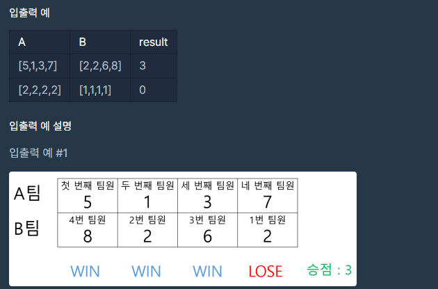 [프로그래머스] 숫자게임(Java, Level.3) 본문