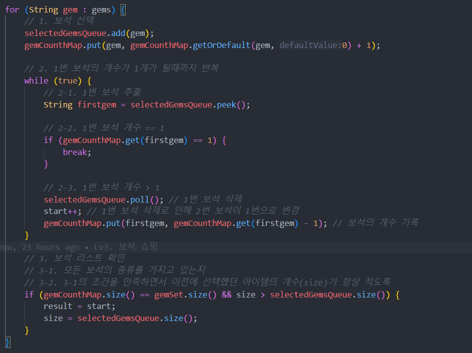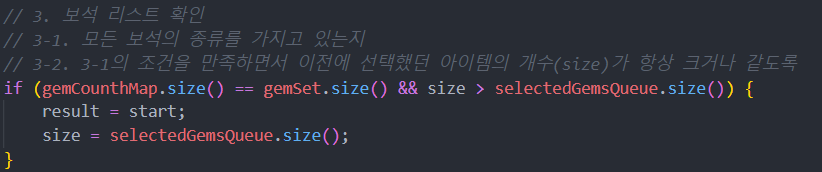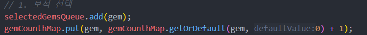 - >> selectedGemsQueue.size() : 현재 가지고 있는 보석 리스트 크기