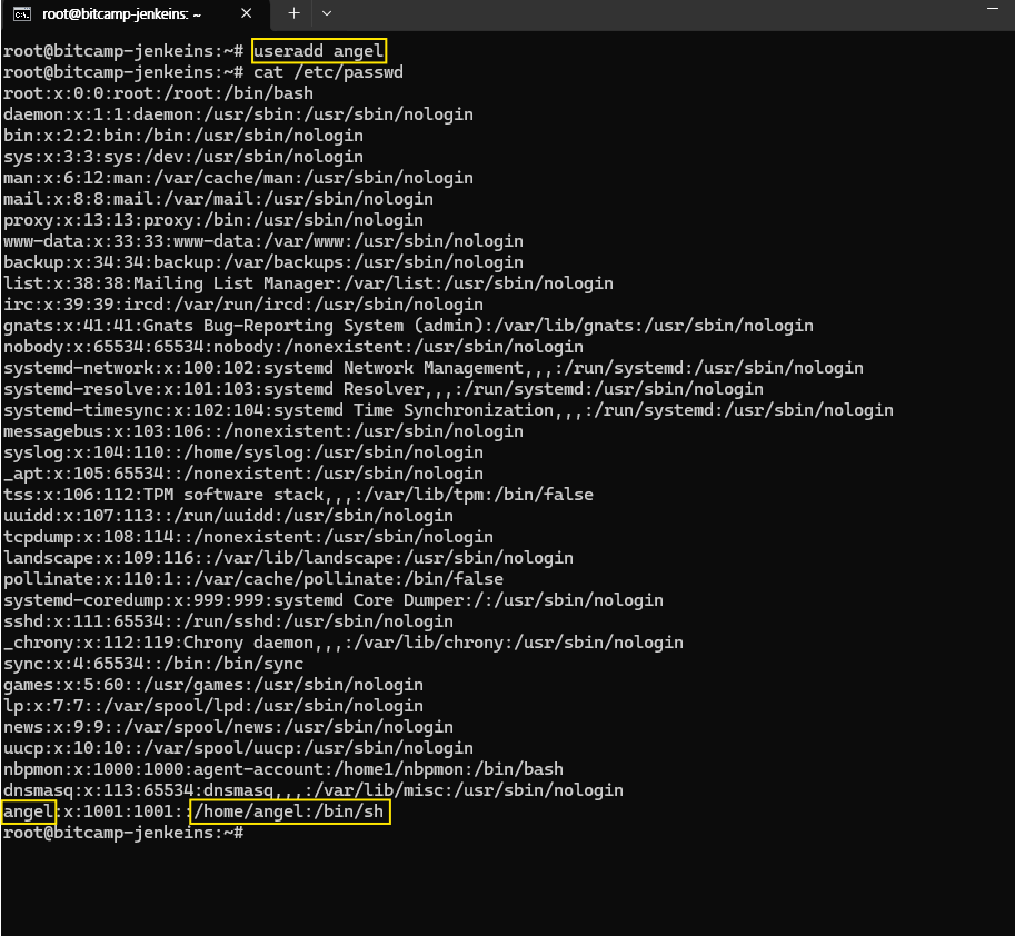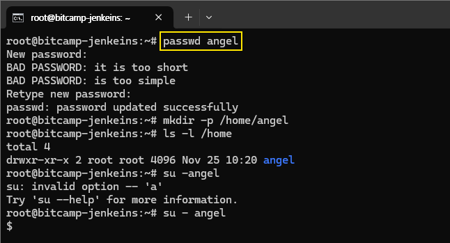 리눅스 디렉토리 계층을 보면 home 안에 사용자 angel이 생긴다.