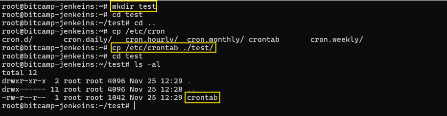 2. test 디렉토리에 /etc/crontab 파일 복사