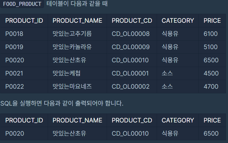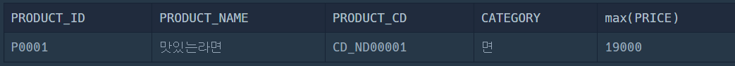 그래서 조건절에 max(PRICE) 를 사용하였다.