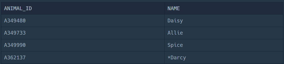 SELECT ANIMAL_OUTS.ANIMAL_ID, ANIMAL_OUTS.NAME