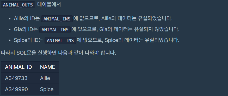 [프로그래머스] 없어진 기록 찾기 (MySQL, Level.3) 본문