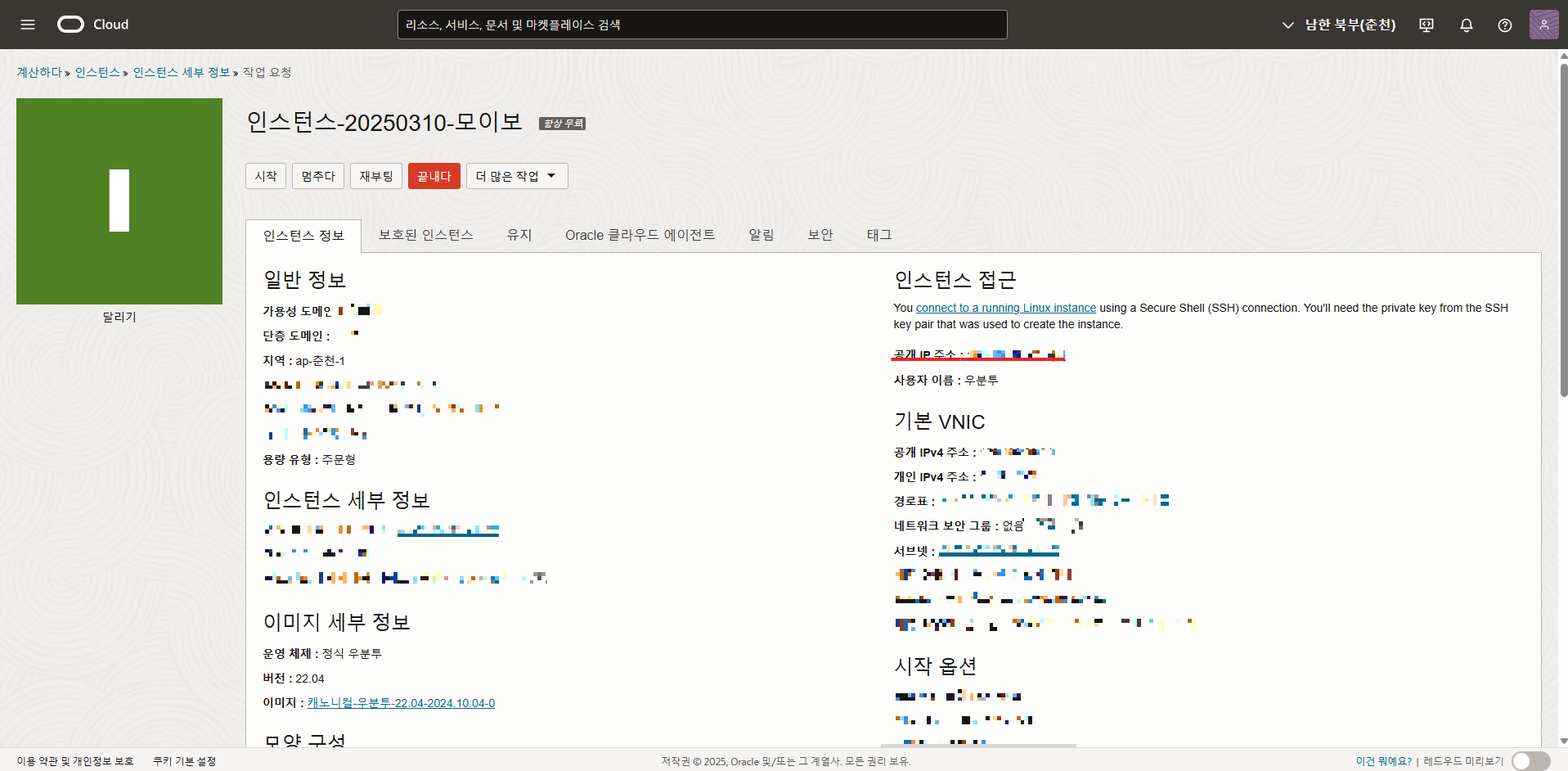 https://velog.io/@wontaekoh/Oracle-Cloud-Instance-%EC%83%9D%EC%84%B1-%EB%B0%8F-%EC%A0%91%EC%86%8D