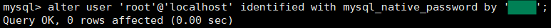 alter user 'root'@'localhost' identified with mysql_native_password by '비밀번호';