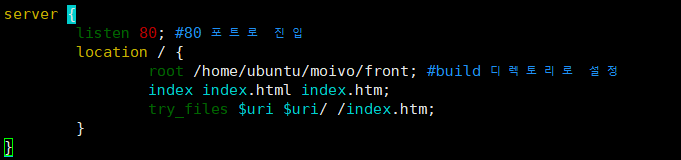 내가 만든 moivo-react.conf를 봐라볼 수 있도록 설정했다.